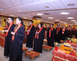 10月6日上午十時,大壇開始誦梁皇寶懺,八十餘位比丘聚首一堂誦經,聲音和諧而莊嚴。至10月12日下午二時三十分,由圓山長老、加拿大性空長老、一如長老、莊嚴寺方丈慧聰法師、照誠法師、超煩法師、瑞法法師等主,為各牌位灑淨,於佛號聲中繞壇場一圈,三位總功德主代表(楊燕芝、楊德業和楊瀚業)執火炬,引燃法船。是次法會在眾法師、信眾的祈願中功德圓滿。