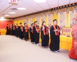 10月5日,旭日集團於美國紐約上州珍珠湖畔的Blue Hill Plaza啟建「十方法界四聖六凡水陸普度大齋勝會」,當天下午三時,高齡九十八歲的圓山長老、深圳弘法寺首座和尚一如長老、上海龍華古寺方丈照誠法師、紐約佛教委員會主席中恒顯實法師(Ven.Dr.T.Kenj itsu Nakagaki)、新州福慧寺方丈超煩法師、瑞光寺方丈瑞法法師等入壇。圓山長老於開幕儀式上致辭表示:「在美國啟建水陸法會機緣殊勝,難得亦難遇,希望大眾在法會期間放下萬緣,安住道場,精進用功才不負總功德主旭日集團的苦心。」接著一如長老、照誠法師、中恒顯實法師、超煩法師及瑞法法師等一一勉勵大眾。旭日集團代表楊燕芝、楊德業、楊瀚業,楊浩夫人等到美參加是次法會。